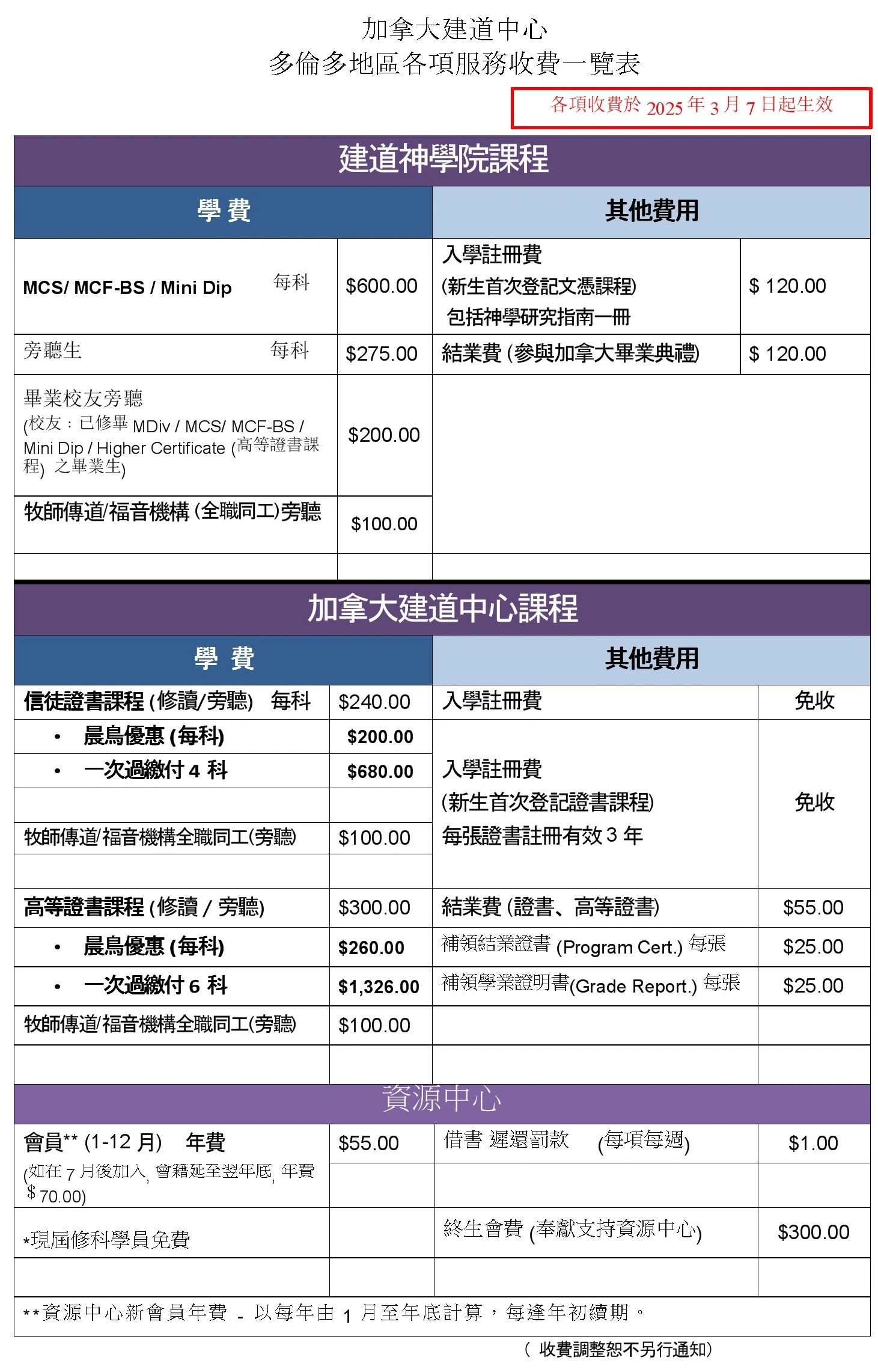 修讀由建道神學院所開辦課程之學分可轉其他神學院。建道之碩士課程是亞洲神學協會所認可,因此建道神學院所開辦的碩士程度課程之學分,按個別學員情況可轉至亞洲或北美各神學院。